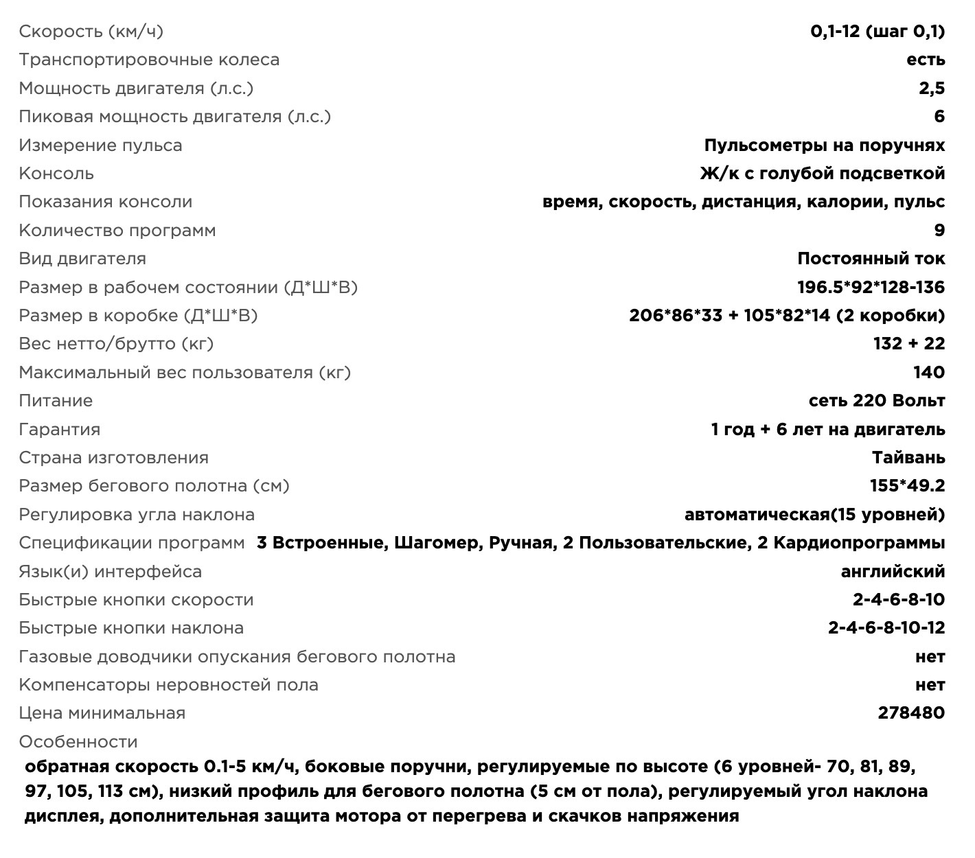 - Наклон бегового полотна: 15 уровней, регулируется с консоли или поручней